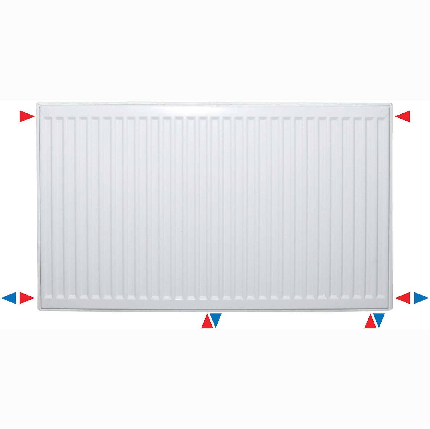 De horizontale radiator bestaat uit 8 aansluitpunten. Het is ontworpen om zich aan elke situatie aan te passen. Het biedt een veelvoud aan mogelijke combinaties voor maximale flexibiliteit. Je kunt je cv-ketel rechts, links of in het midden aansluiten.