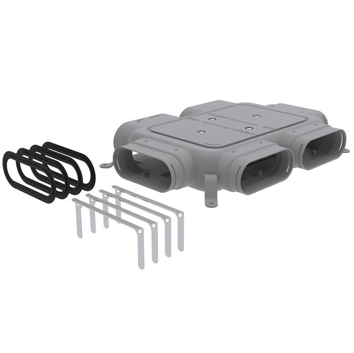 Avec 4 raccordements, anneaux de colmatage et colliers de serrage.